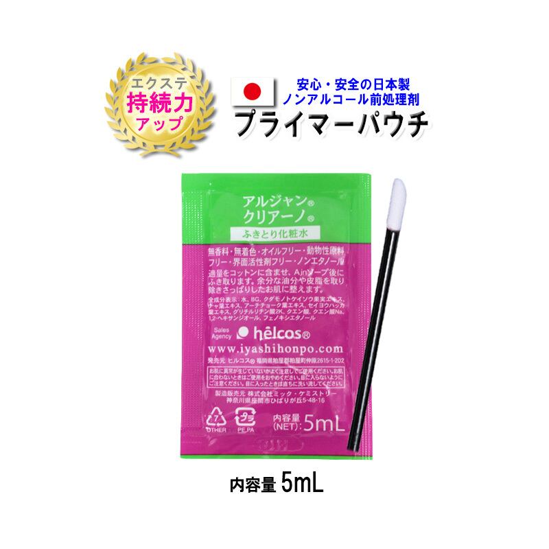 持続力アップ☆【プライマーパウチ5mL+マクロファイバーブラシ】2点セット♪ ノンアルコール前処理剤 日本製 アルコールフリー 除菌 滅菌 まつげエクステセルフ マツエク